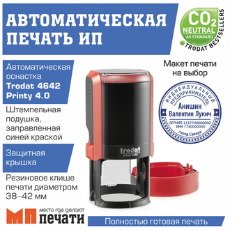 Купить печать ИП на автоматической оснастке - это идеальный вариант для офиса. Оснастка имеет уже встроенную штемпельную подушку заправленную краской и уже готова к использованию. Если вы планируете часто и много пользоваться печатью, то такой вариант вам больше всего подойдет и будет максимально удобен.