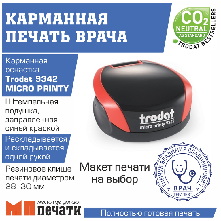 Купить печать врача на карманной оснастке цвет красный.