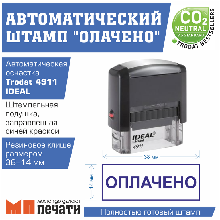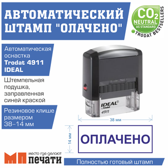 Штамп ОПЛАЧЕНО 38х14 мм на автоматической оснастке.