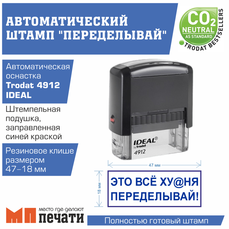 Штамп "ПЕРЕДЕЛЫВАЙ" 47х18 мм на автоматической оснастке.
