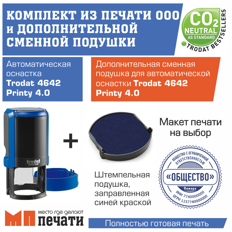 Сделать печать ООО. Комплект из печати ООО и дополнительной сменной подушки.