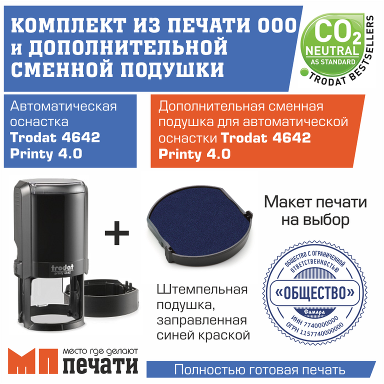 Изготовить печать ООО. Комплект из печати ООО и дополнительной сменной подушки.